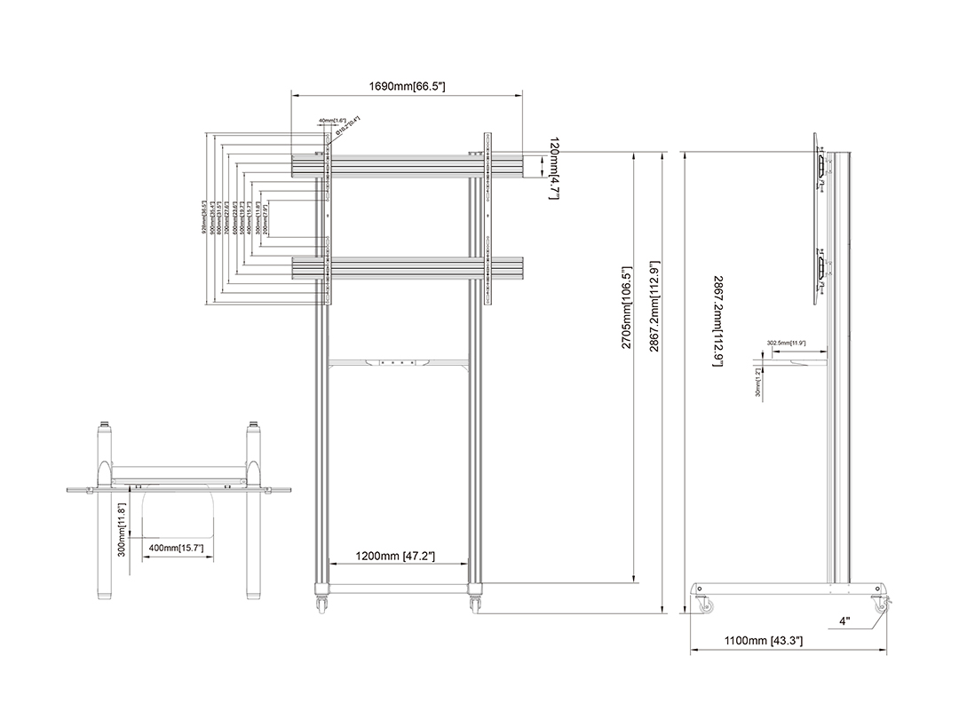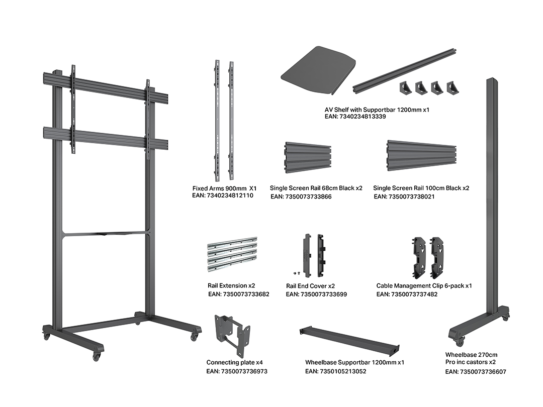 Vesa max: 1600×900; adatta per l’installazione di LG 105BM5N, Samsung QM105D, Ilyama 105″ Prolite e il nuovo formato ultra wide 21:9