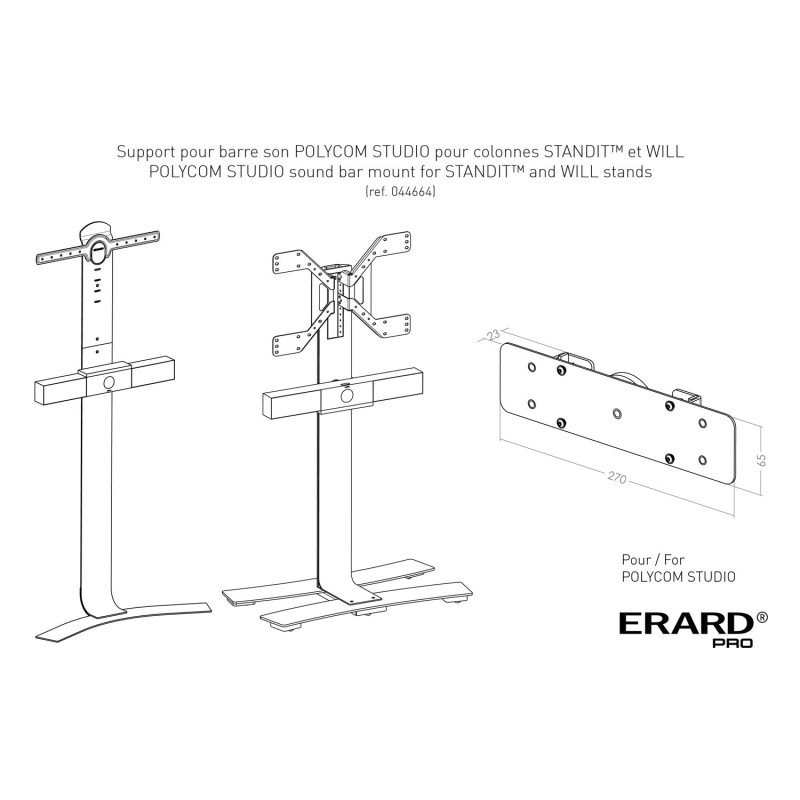 Staffa per il fissaggio della Sound Bar Polycom Studio alle colonne serie Will e Stand It.