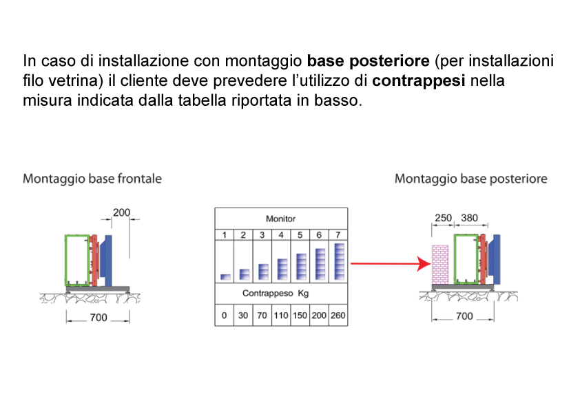 Le strutture autoportanti modulari sono l’ideale per noleggiatori e chiunque abbia necessita’ di utilizzare il videowall in momenti e configurazioni differenti. Realizzate in acciaio verniciato con polveri epossidiche. Montaggio e smontaggio rapido con viti a galletto imperdibili. Struttura rinforzata per montaggi e smontaggi ripetuti. Adatte principalmente per monitor da 46″- 55″- 60″. Installabili anche a filo vetrina, invertendo la base, in questo caso necessita l utilizzo di contrappesi. Per individuare la soluzione pi’ idonea e’ disponibile il configuratore videowall. Per strutture non presenti nel configuratore consultate il nostro staff tecnico. I monitor da 46″ devono avere le dimensioni: 1026×580 cm I monitor da 55″ devono avere le dimensioni: 1215×686 cm I monitor da 60″ devono avere le dimensioni: 1336×755 cm Portata massima: 50 kg/monitor.