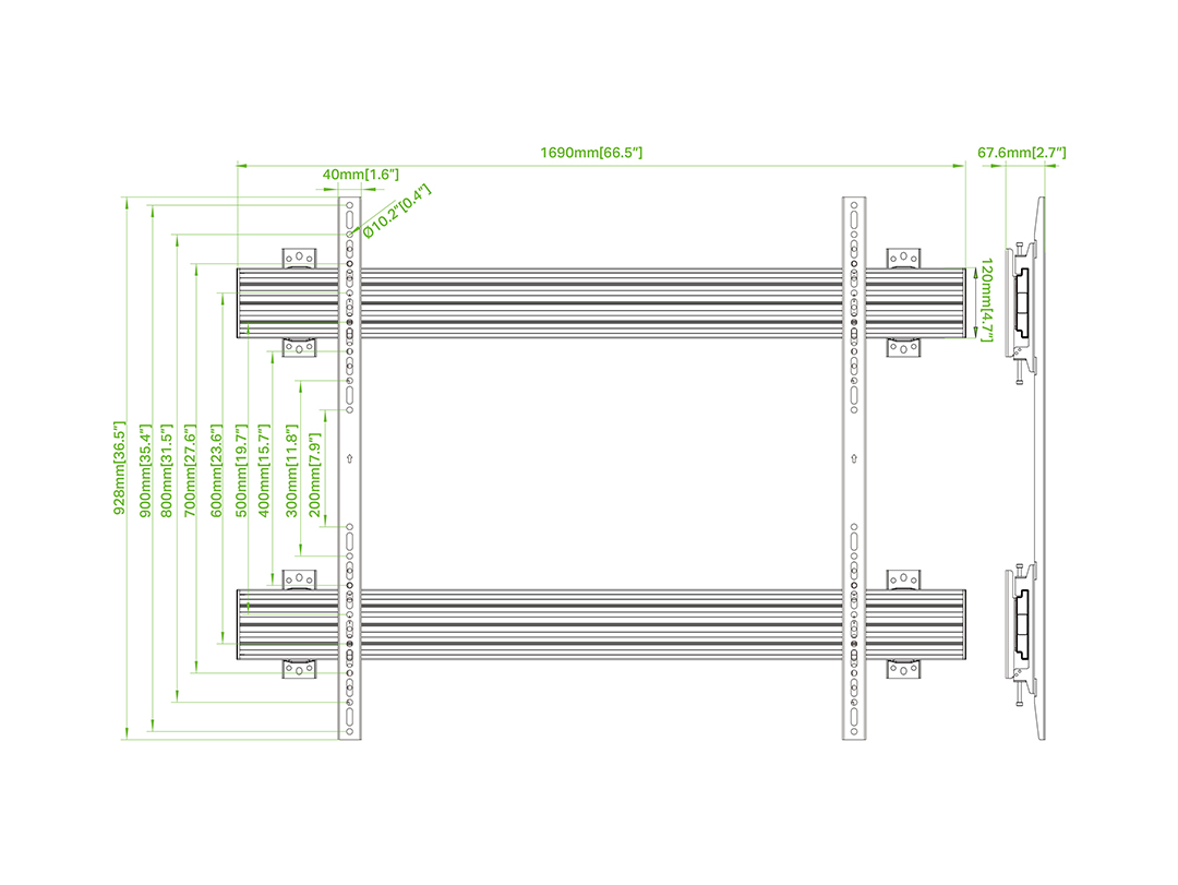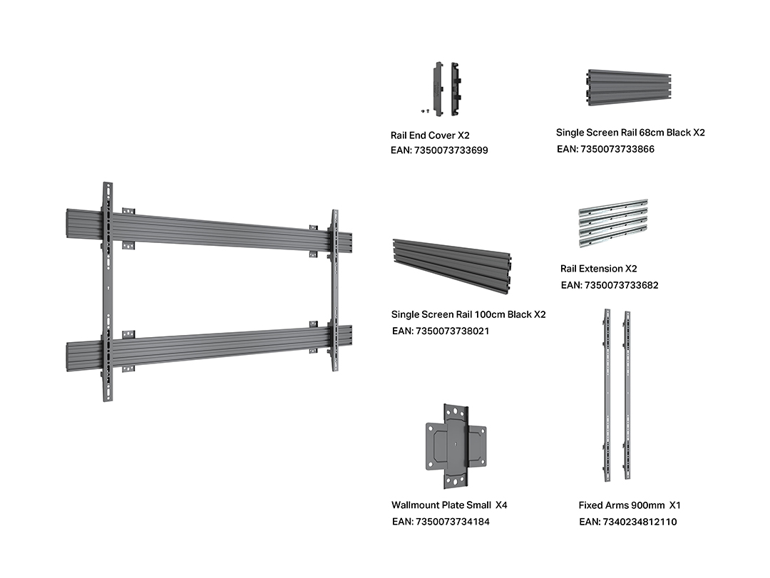 Staffa fissa per schermi di grandissimo formato, anche wide, come per esempio LG 110UM5J 110UM5K e 105BM5N, Samsung QM105D, Ilyama 105″ Prolite e il nuovo formato ultra wide 21:9