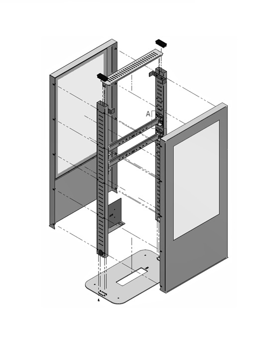 Consente di installare 2 schermi in posizione back to back, per applicazioni Digital Signage in spazi molto ampi, come punti informativi e sistema di orientamento.