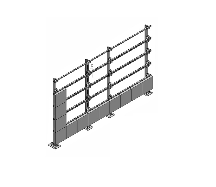 Struttura autoportante con fissaggio a pavimento, progettata in base a modello di LED, dimensione della configurazione e altezza da terra della prima fila di moduli