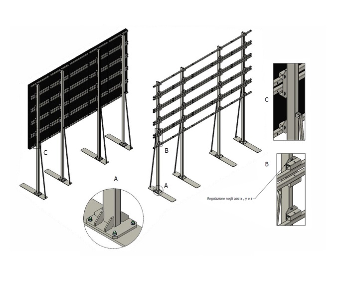 Struttura freestanding progettata in base a modello di LED, dimensione della configurazione e altezza da terra della prima fila di moduli