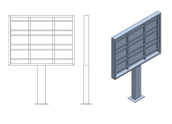 Progettiamo strutture che possono essere fissate a muro o a terra come un cartellone, rifinite con pannellatura perimetrale di protezione.